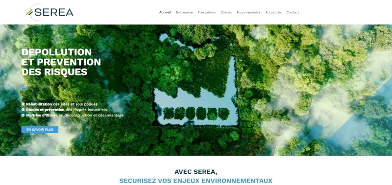 Une page d’accueil dynamique présentant les missions et l’expertise de SEREA.