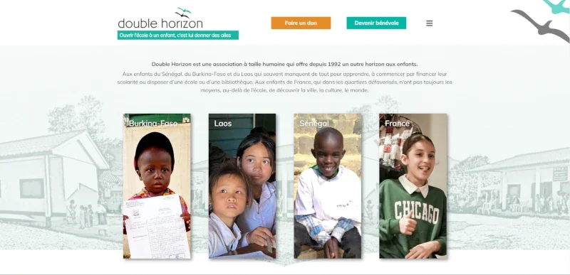 Créée en 1992, Double Horizon est une association humanitaire qui a pour objectif de permettre aux enfants de pays d’Afrique (Sénégal, Burkina-Faso) et d’Asie (Laos) d’accéder à l’instruction et aux jeunes de bénéficier d’une formation qui les amène à un métier. L’association intervient également en France, dans les quartiers défavorisés, auprès d’enfants n’ont pas toujours les moyens, au-delà de l’école, de découvrir la ville, la culture et le monde.